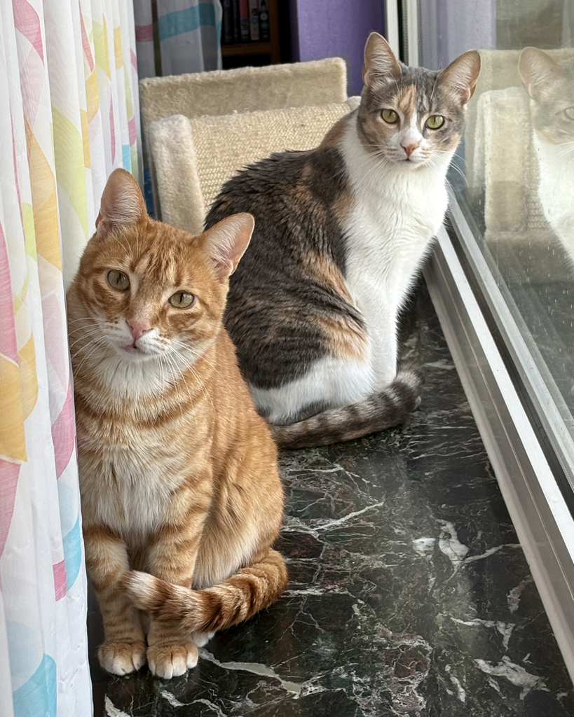 Trotzdem hätten wir kein Problem gehabt noch länger zu warten. Aber manchmal geht es schneller als erwartet. Die für uns “richtigen” Katzen saßen bereits ca. 2 Jahre auf der Pflegestation und zogen am Valentinstag zu uns um. Ja, nicht ein neuer Vierbeiner, sondern gleich zwei: Ayla und Miro, ein 2 ½ Jahre altes Geschwisterpaar aus Spanien. Miro ist ein klassischer, orangefarbener Kater. Ayla hingegen eine Calico (dreifarbige Glückskatze) – im Vergleich zu Lyssi jedoch mit einem wesentlich höheren Weiß- und Tigeranteil.