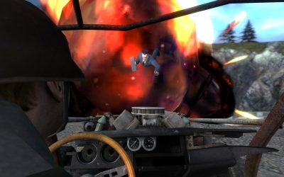 Ist es ein Vogel? Ist es ein Flugzeug? - Nein, es ist Supergman, der von einer Explosion davon fliegt und dabei einen arglosen Autofahrer erschreckt. Was für ein rücksichtloser Idiot...