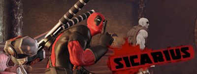 Der Hintergrund ist ein Ausschnitt aus einem offiziellen Screenshot und zeigt Deadpool wie er sich an einen Gegner heranschleicht. Der Hintergrund für "SICARIUS" ist hingegen schlicht das offizielle Logo des Spiels welches ich mit roter Farbe übermalt habe, um Platz zu schaffen für meinen Namen. Dieser wurde mit der Schriftart "Rogue Hero Distressed" geschrieben, die zwar nicht ganz an die des Spiels herankommt, aber fast genau die ist, die im Comic zum Einsatz kommt. Dann noch den Kontrast auf -25 gesetzt und fertig.