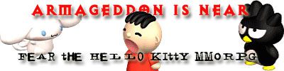 'Oh mein Gott was soll DAS sein?' - So oder so ähnlich war bestimmt eure Reaktion oder? Schuld an dieser etwas anderen Sig war ein Thread im AreaDVD-Forum. Da wurde das Hello Kitty!-MMORPG vorgestellt und nach dem (Gott hätte ich es sein lassen... :) ) anklicken des enthaltenen Links überkam mich das Grauen. Und da ich ja ein guter Mensch bin, habe ich mit dieser Signatur nun ein Warnzeichen erstellt.