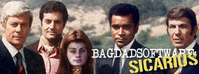 Das Hintergrundbild ist ein Werbefoto zur fünften Staffel, über das ich einen leichten Film Grain-Filter gelegt habe. Für "Bagdadsoftware" kam die kostenlose Schriftart "Another Typewriter" zum Einsatz. Für "Sicarius" hingegen "Gunplay". Beide Layer wurden zudem mit einem leichten Drop Shadow versehen. Ursprünglich war ich zu diesem Zeitpunkt fertig mit dem Bild. Die Fokusgruppe forderte jedoch, dass ich mein Gesicht einbaue. Der Rest war eine Sache der Farbanpassung und des richtigen Einsatzes des Radiergummis.