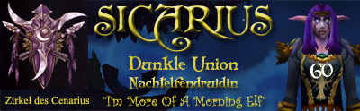 Dieses mal wieder Pünktlich gab's ein neues Sig-Bild - und wie soll's auch anders sein? - zu World Of WarCraft :). Dieses Sig-Bild wurde bis Level 60 immer wieder mit dem aktuellen Aussehen meines Charakters überschrieben.